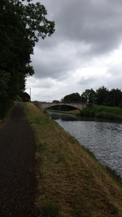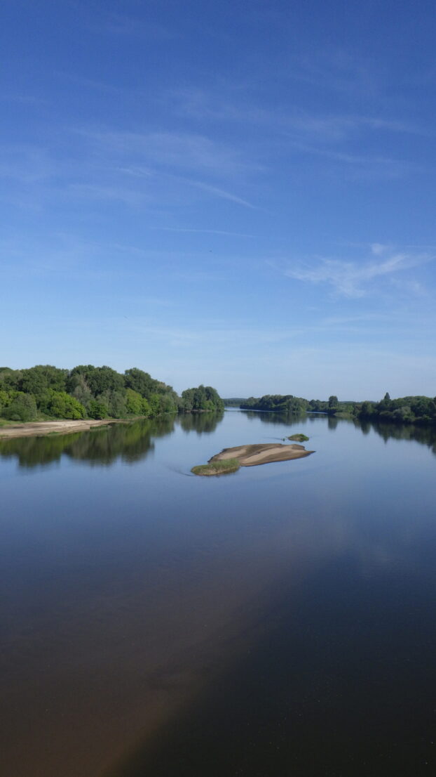 Cette étape est la plus longue de notre virée. Après une bonne nuit nous voilà parti pour 73 kilomètres. Notre parcours prévoit que nous commencions par progresser sur la rive gauche de la Loire donc de passer sur le pont canal pour récupérer la piste cyclable qui nous permet de rouler à l’ombre d’une belle frondaison jusqu’à Saint-Brisson-sur-Loire. A partir de Gien nous pédalons sur la levée de la Loire que nous quitterons parfois. Le chemin que nous suivons jusqu’à Saint-Denis-de-l’Hôtel est le tracé de l’EuroVélo3 qui relie Cologne à Saint-Jean-Pied-de-Port.