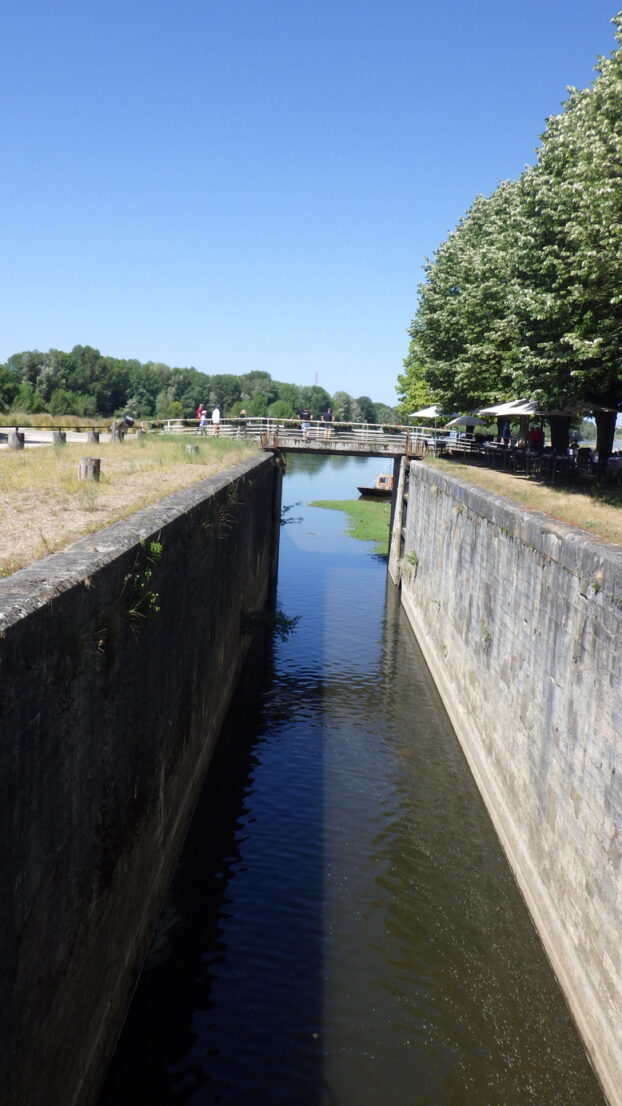 Après une bonne nuit et un bon petit déjeuner à l’hôtel le Dauphin nous reprenons notre randonnée pour nous diriger vers Combreux. A Cécy nous nous arrêtons pour visiter l’église et faire une halte café crème. J’ai fait le tracé à partir d’une trace GPX existante que je n’ai pas vérifiée : en fait je vais très vite m’apercevoir que cette trace nous fait passer par la campagne entre Commbleux et Donnery. En suivant les indications du GPS nous commençons par nous diriger vers Orléans. Cette erreur nous permet de voir l’écluse de Patache qui est celle qui permettait d’accéder au canal depuis la Loire. A la sortie de cette écluse il existait une forme de radoub : bassin qui permet de mettre un bateau à sec pour son entretien.