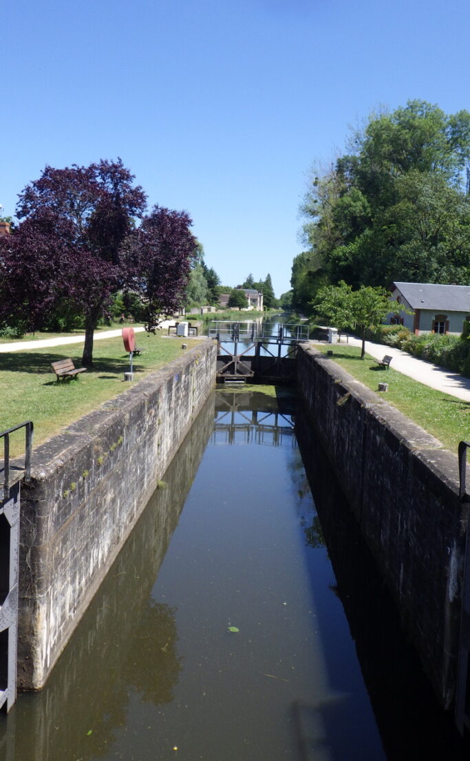 Les longs kilomètres du bief arrivent à leur fin et l’arrivée sur la descente du versant Seine commence par une succession de deux écluses distantes de cent mètres qui nous amène au village de Grignon.
