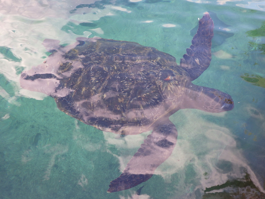 Après avoir signé moultes documents et pris de nombreuses photos de notre véhicule nous rejoignons notre première résidence qui se trouve à Boucan Cannot l’appart hôtel Marina Hôtel. La chambre est correcte. Comme l’après midi est déjà bien avancée nous nous décidons pour aller visiter « Kelonia : Observatoire des tortues marines. Avant d’avoir rempli ce rôle ce lieu était dans un premier temps une chaufournerie puis a été intégré à une ferme aquacole qui exploitait les tortues marines en utilisant la méthode du ranching.