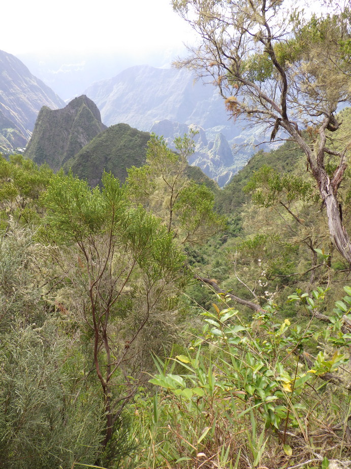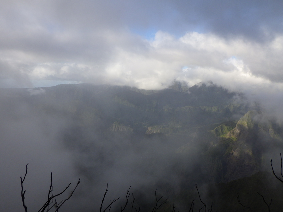 Réveil prévu à 05h30 pour prendre le chemin du Trou de Fer et pour arriver vers 09h30 – 10h00 avant que les nuages aient pris possession des lieux. Pour nous faciliter la progression nous décidons de ne pas prendre la totalité du chemin du Trou de Fer de façon à ce que notre progression ne soit pas trop ralentie par la boue. Nous passons donc par le chemin de l’École Normale où nous n’avons pas à subir d’une part cette boue et d’autre part les montées et descentes des ravines.