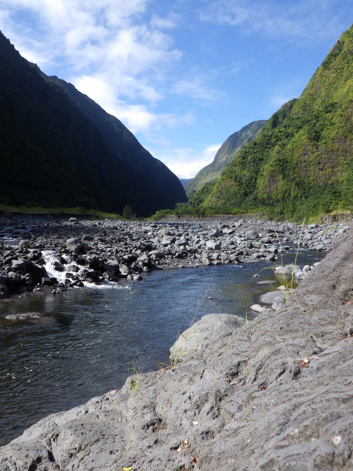Au programme de ce jour Le Grand Bénare à partir du parking du Maïdo ou du refuge des Tamarins. Malheureusement Olivia n’est pas bien physiquement et déclare forfait. N’ayant pas envie de faire cette randonnée tout seul par souci de sécurité je choisis d’aller marcher le long de la rivière des Galets. Elle prend sa source dans le cirque de Mafate qui commence véritablement à Deux Bras : départ de nombreux chemins de randonnée.