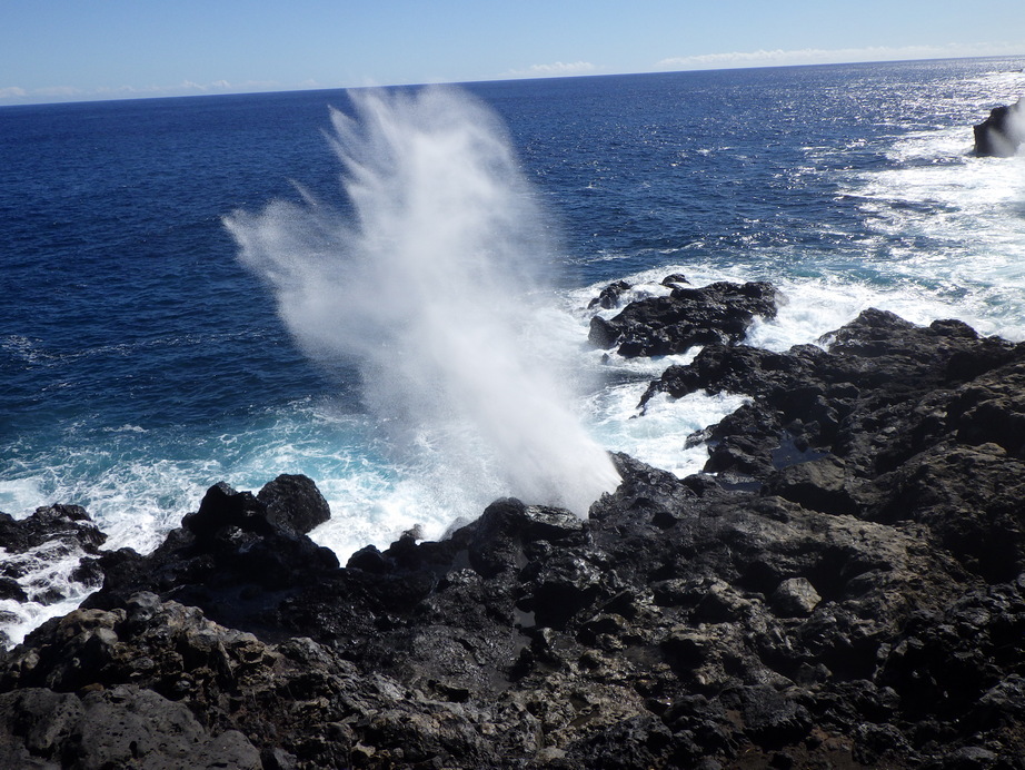 Au cours de cette ballade sous un beau soleil nous nous arrêtons pour voir le « Souffleur« . La houle n’est pas violente. Malgré tout l’effet et le bruit émis sont impressionnant.