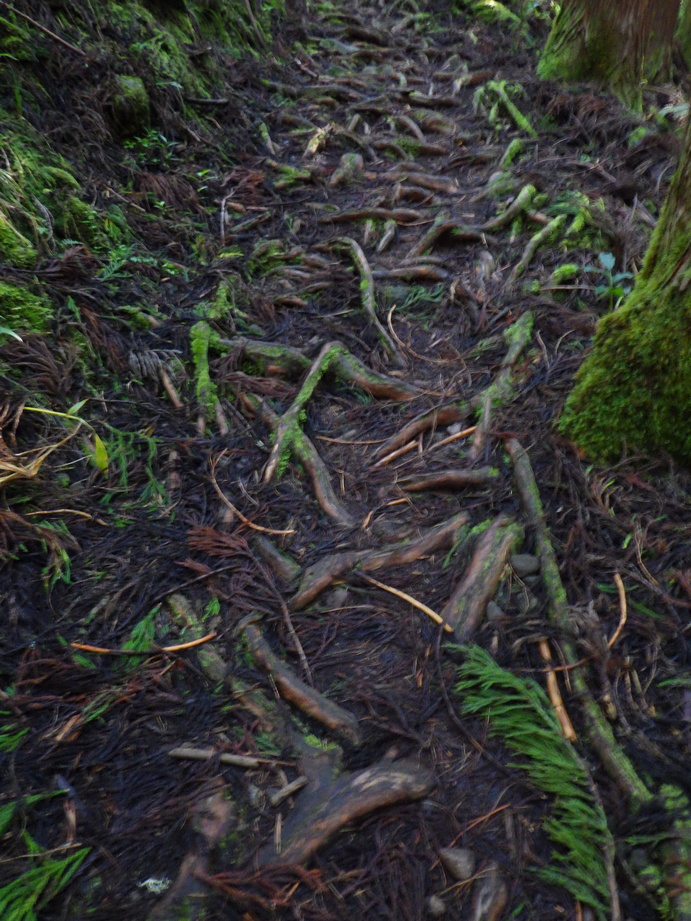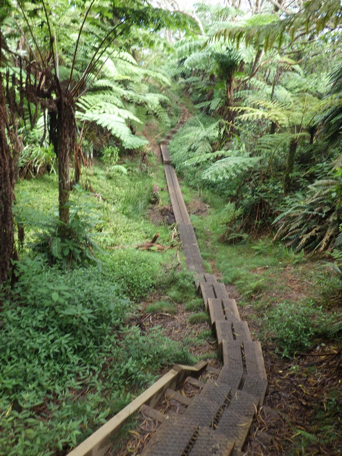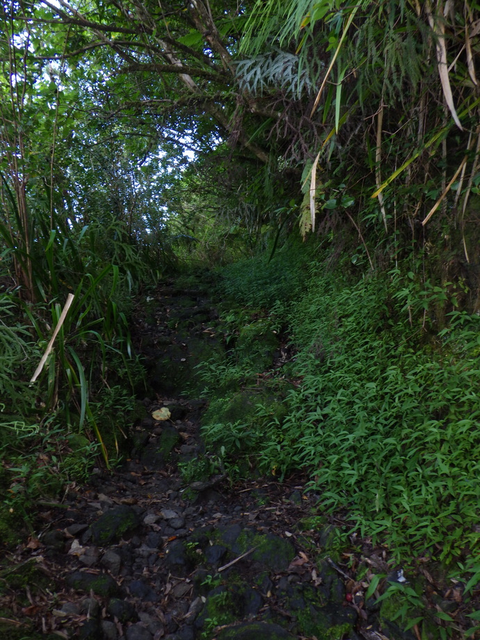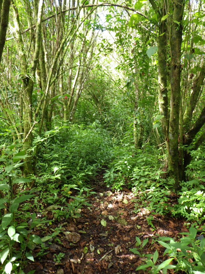Cette randonnée ne présente aucune difficulté ni du point de vue du dénivelé ni de la distance. Comme nous sommes dans la partie de l’île où il pleut souvent nous faisons les trois quarts du parcours sous une petite pluie fine. Le chemin est naturellement boueux.