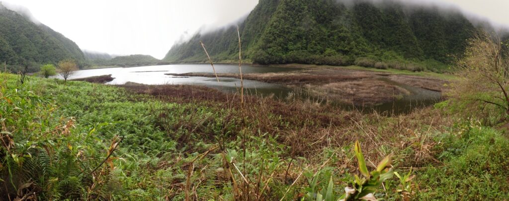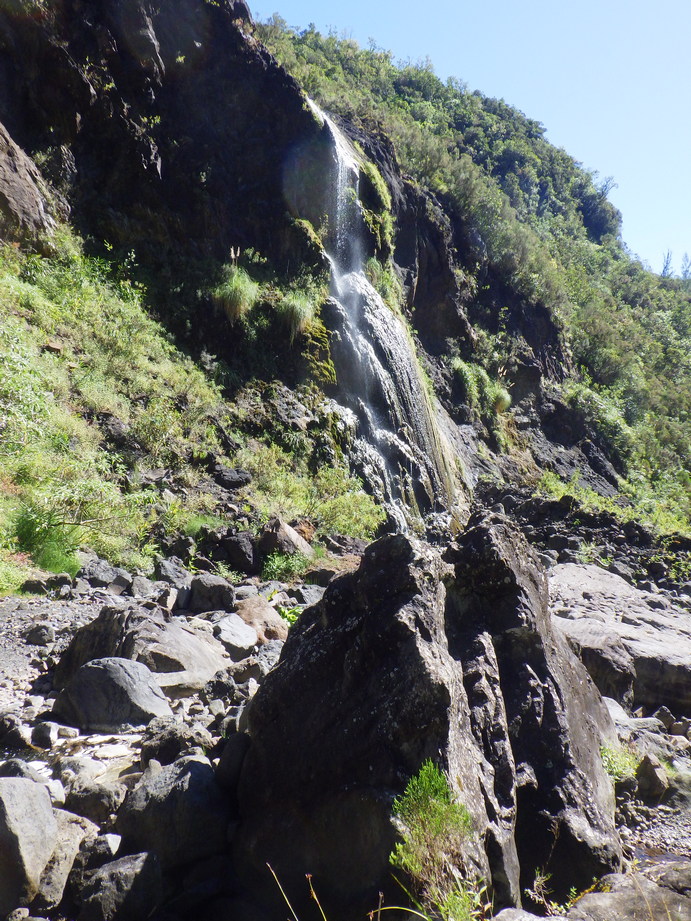 Après cet intermède consacré aux cétacés et aux dauphins, nous avons pour objectif du jour de faire le tour du Grand Étang en poussant vers les cascades du Bras d’Annette. L’étang est alimenté par ces cascades et les eaux de ruissèlement provenant des hauts remparts. L’eau s’évacue par infiltration dans la roche volcanique.