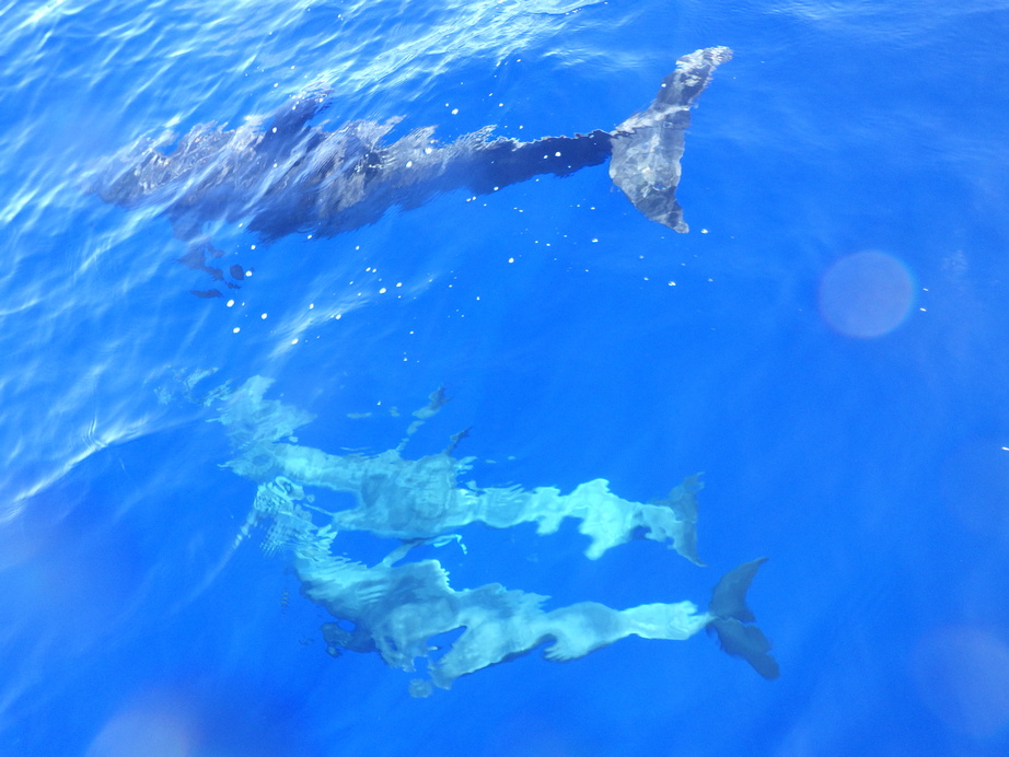 Nous appareillons à l’heure prévue. Nous ne verrons pas de baleine à bosse bien qu’elles soient déjà présentes dans les eaux réunionnaises. Les dauphins seront au rendez vous. Ceux qui sont ceux le plus observés sont les dauphins à long bec et les grands dauphins de l’anglo-pacifique. Ce sont ceux qui croisent notre route.