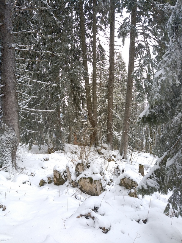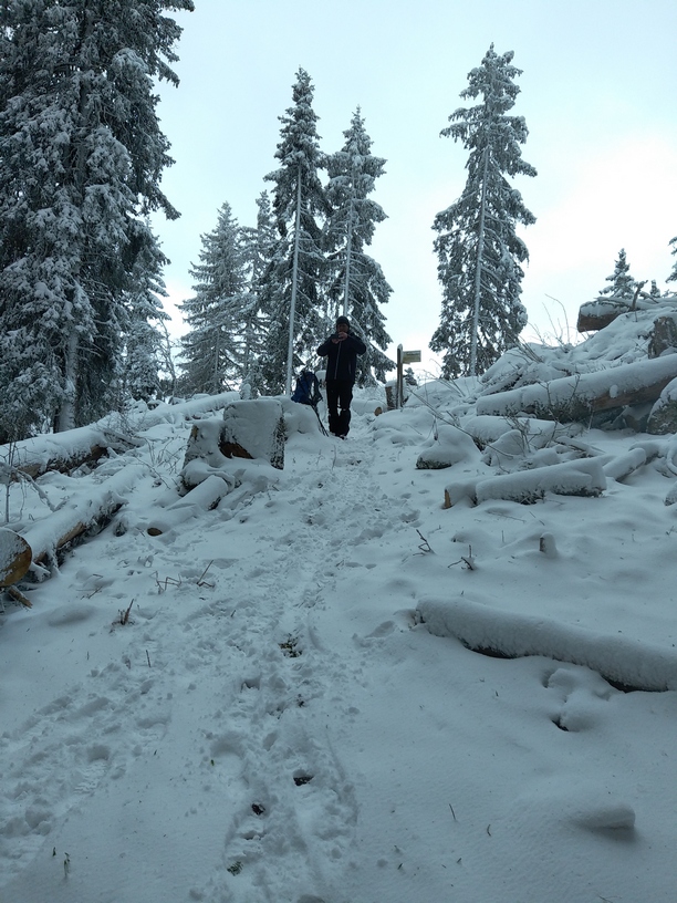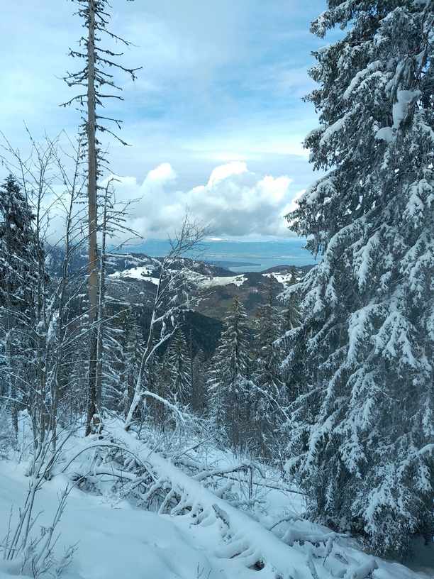 La montée vers la Pointe d’Ireuse se fait dans un paysage entièrement blanc et la couche de neige tombée n’est pas trop épaisse. Nous y trouvons la justification pour ne pas avoir pris de raquettes.