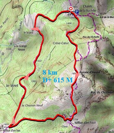 A la pointe nous faisons une nouvelle halte pour grignoter un peu et nous désaltérer. Nous décidons de rejoindre Nifflon d’en Haut pour pique-niquer à l’abri du vent. Après cette halte bienvenue nous repartons pour rejoindre notre véhicule par Nifflon d’en bas et le Sicard.